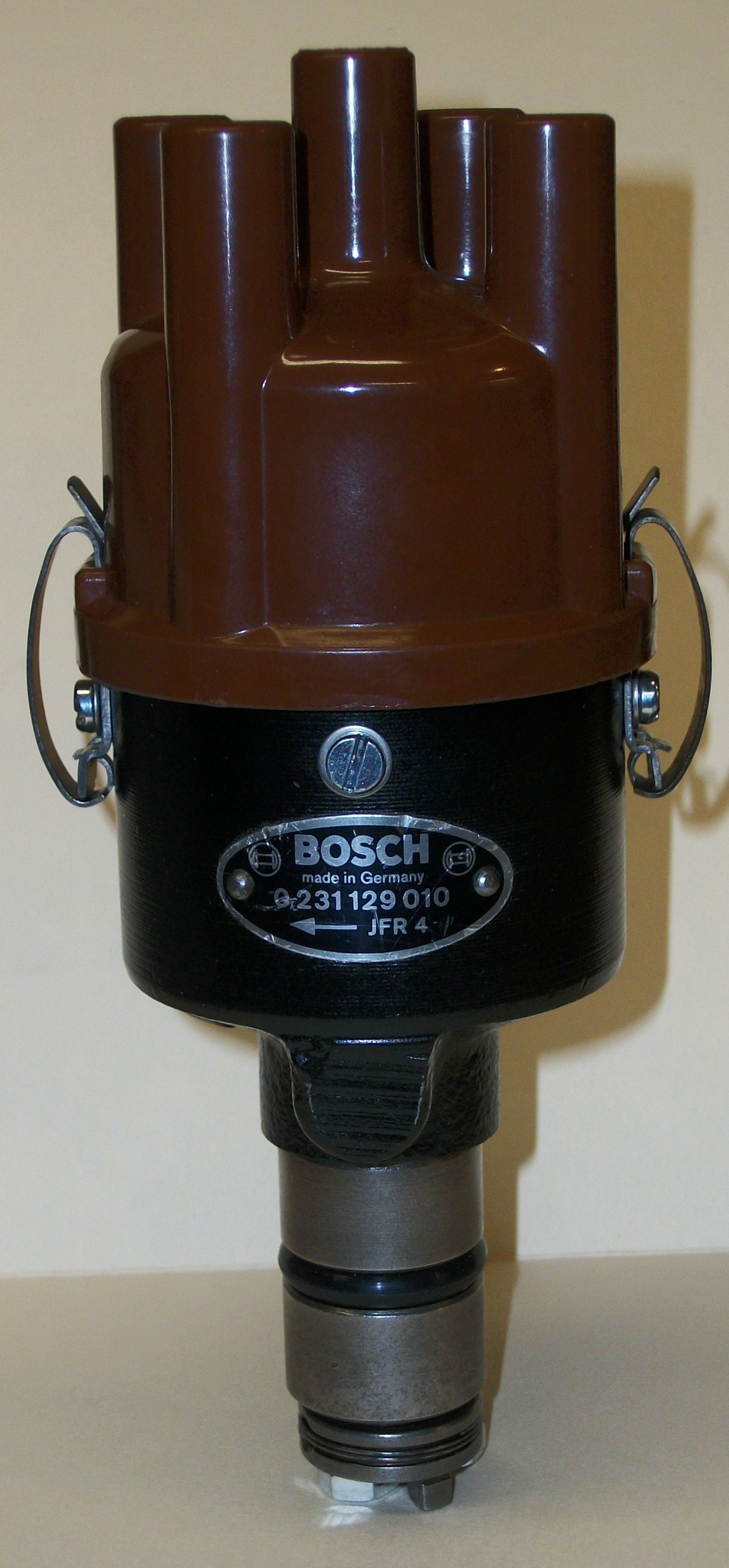 The 010 all-mechanical distributor was used in VW truck or transporter motors after 1959. These distributors start advancing at about 600 RPM at the distributor (1200 RPM at the crank) and are all-in at with advance at about 22°at 1300 RPM (2600 RPM at the crank). These have been used in racing or for spirited driving because of the earlier and greater advance as compared to the 019, which are better suited for normal driving. CFI stocks and sells original restored Bosch 010 distributors.